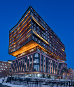 The Fort Point Channel, which has witnessed Boston develop over the years, right from the historic Tea Party, connects several prominent structures across it. A new corporate headquarters emerges with a front-row seat to the river. Although contemporary, it includes elements of color and architectural features that pay respect to the subtle brick-laden facades of the neighborhood. Due to its height and location, the facade is visible across many vantage points, which provided for a lighting design challenge that not only celebrated a new landmark but also respected the neighborhood and the river.