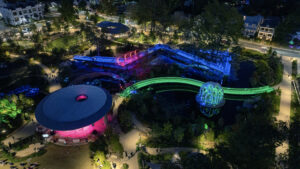After dark, lighting reinforces the park’s identity as a civic heart. A sophisticated control system coordinates thousands of individually addressed fixtures and water features, shifting seamlessly from calm, welcoming illumination to vibrant event displays. Warmly illuminated architecture, softly lit pathways, and programmable scenes create an environment that feels both intimate and monumental.